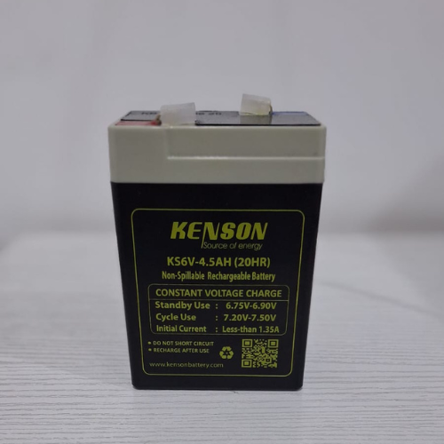 The KENSON 6V4.5AH Rechargeable Sealed Lead Acid Battery is a high-performance, maintenance-free power solution for reliable and long-lasting energy storage. Utilizing advanced Absorbent Glass Mat (AGM) technology, this battery offers superior efficiency, enhanced safety, and extended service life.